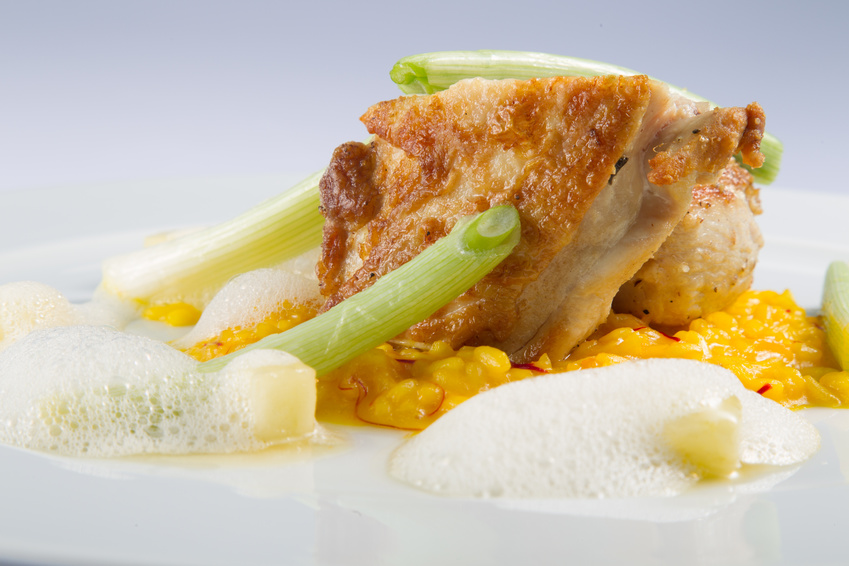 Maispoulardenbrust mit Safranrisotto und Saisongemüse